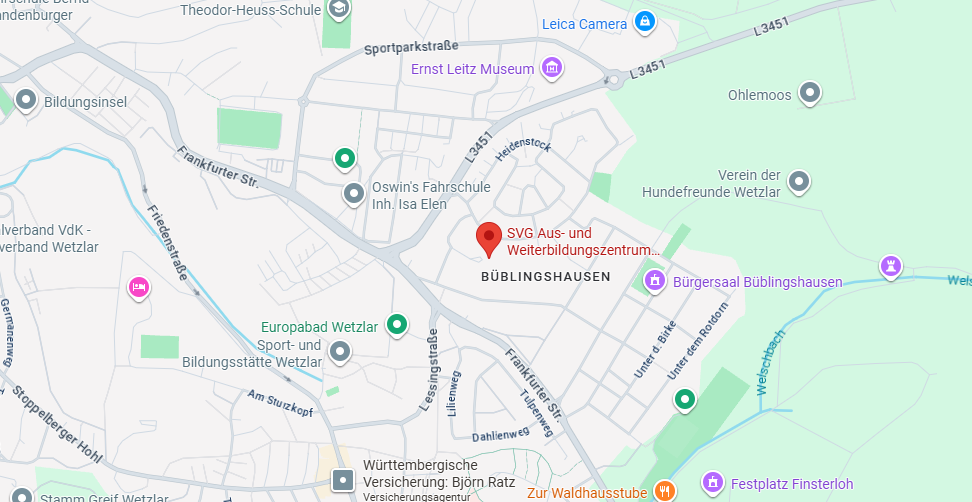 Von der A5 auf die A45 Richtung Wetzlar Ausfahrt 31 Wetzlar Süd Richtung Wetzlar-Süd, dann der L3451 bis Im Amtmann fahren